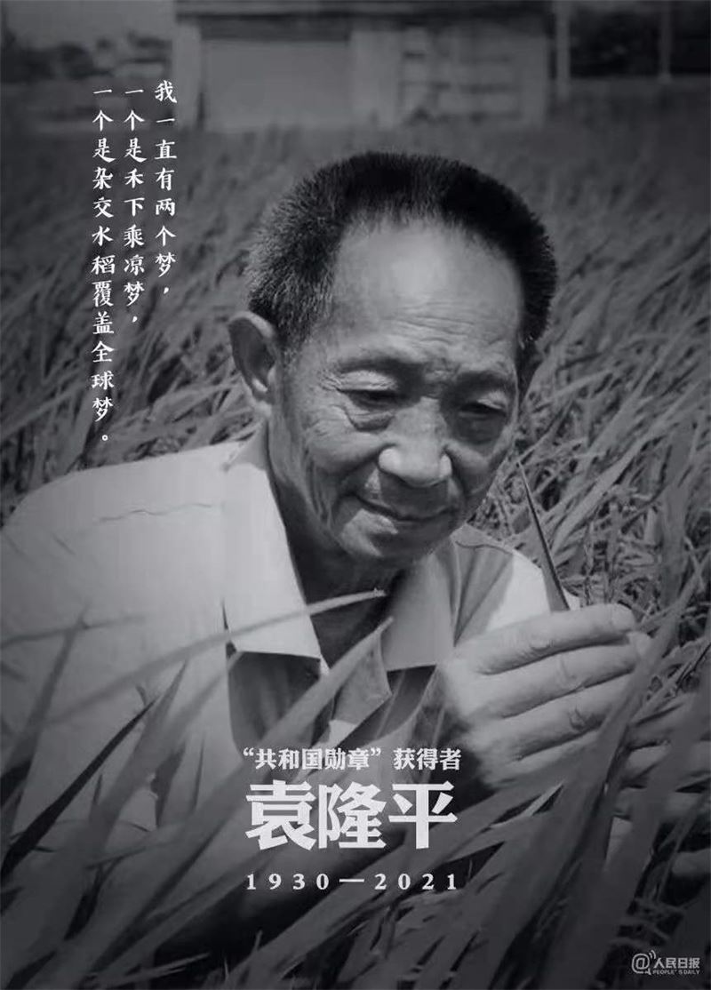 “我一直有兩個夢,一個是禾下乘涼夢,一個是雜交水稻覆蓋全球夢。” 袁老的兩大心愿,國人謹(jǐn)記,必當(dāng)繼承使命。